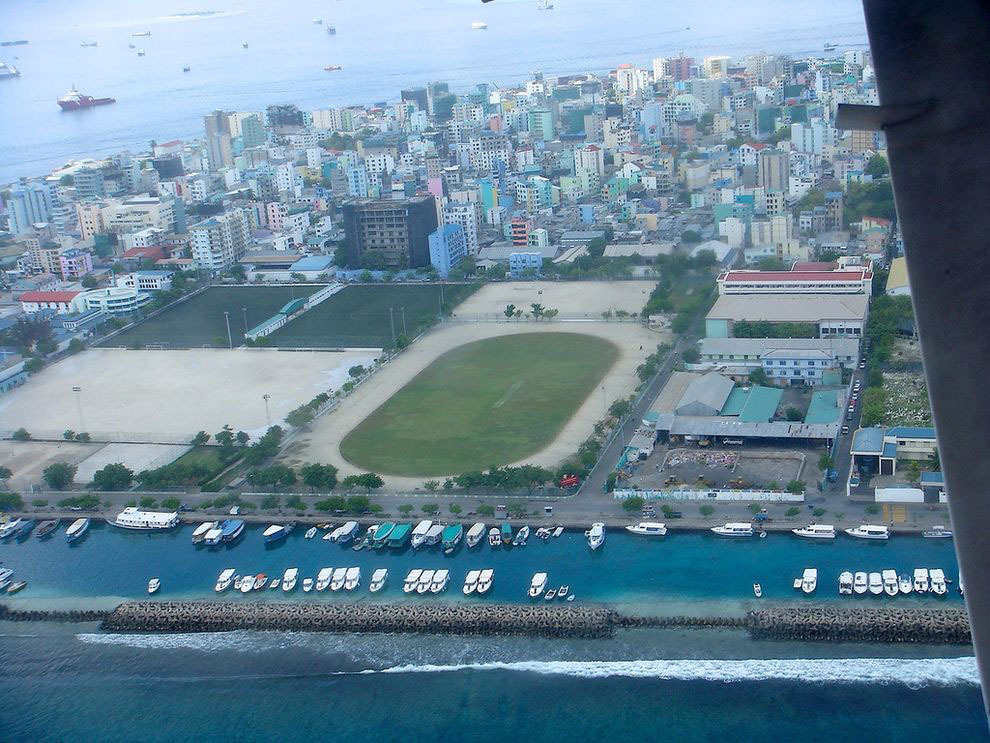 Острів Мале всього 2 кілометри в довжину та 1 кілометр завширшки, повністю забудований будівлями і дорогами. При цьому столиця Мальдів залишається чистим і охайним містом з мечетями, ринками, лабіринтом маленьких вулиць, закутаний в покривало чарівності. Мале - єдина в світі столиця-острів, він займає невеликий атол від краю до краю. А так як атоли не дозволяють людям розмахнутися, то місто Мале вважається одним з найменших столиць світу, площа його - всього - 2 кв.км. Звідси - ще одна особливість: багато служб столиці винесені на сусідні острови; так, неподалік від Мале знаходиться острів-птахофабрика, острів, який повністю відданий під завод «Кока-Коли», острів-аеропорт...