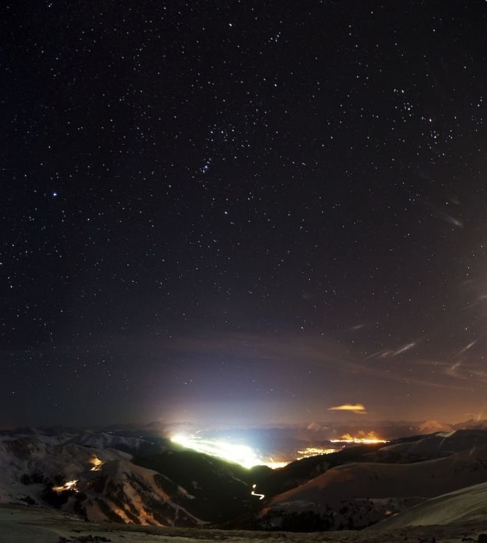Нічні вогні у готельному комплексі Буковель, Карпати, Україна