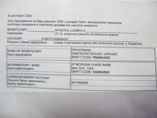 Рахунок у Приватбанку: 5168757255871198 (для гривень).