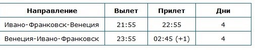 Згідно даним в системі бронювання, з 14 квітня МАУ запустить рейс Івано-Франківськ-Венеція, який виконуватиметься один раз в тиждень щочетверга, повідомляє avianews.com.