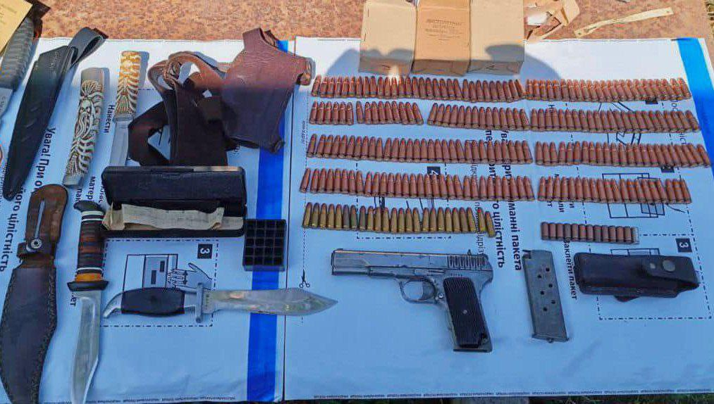 Правоохоронці провели обшук за місцем тимчасового помешкання затриманого. У ході слідчих дій виявили та вилучили предмет схожий на пістолет та 250 набоїв різного калібру та інші речові докази.