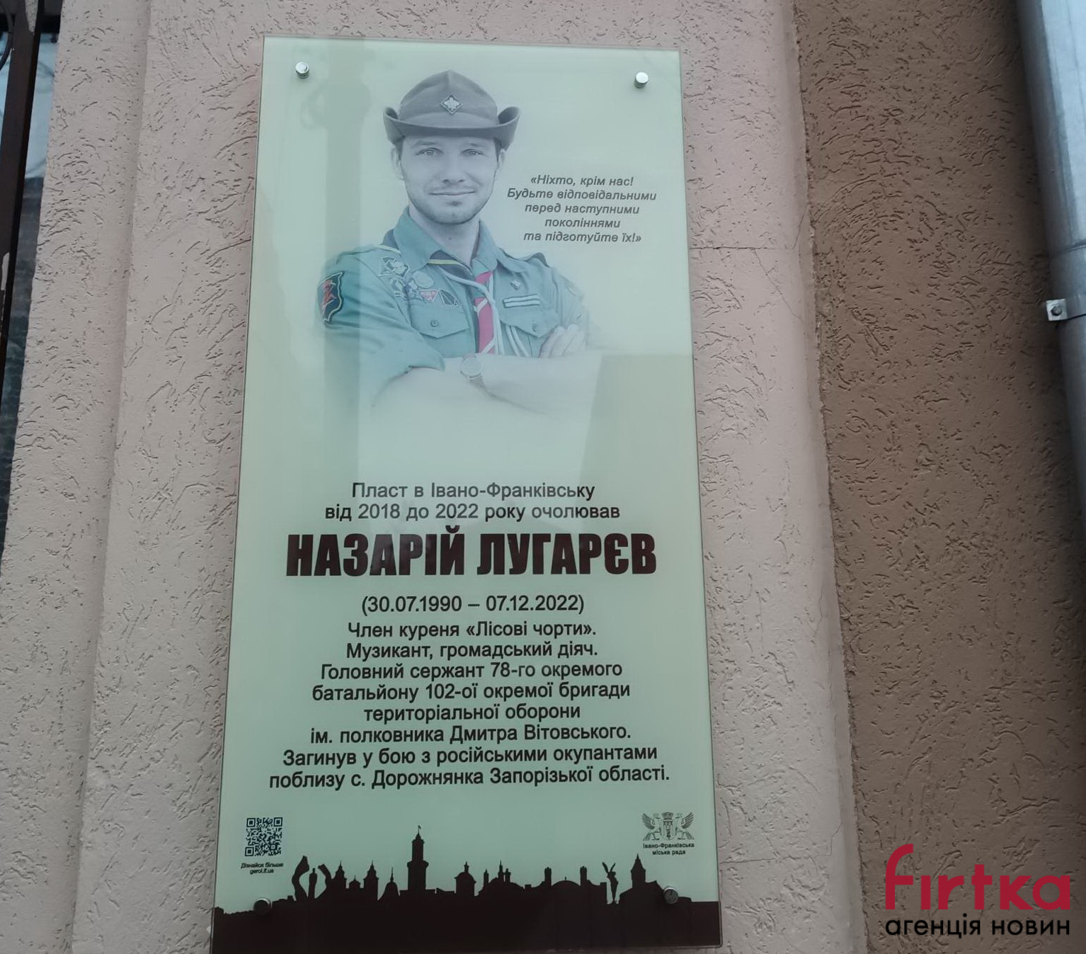 Пам'ятна дошка Назарію Лугарєву на фасаді єдиної в місті пластової домівки по вулиці М.Павлика, 10 увіковічить пам'ять про багаторічного очільника станиці Івано-Франківськ та пластуна, що не зламав своєї присяги - бути вірним Богу та Україні.