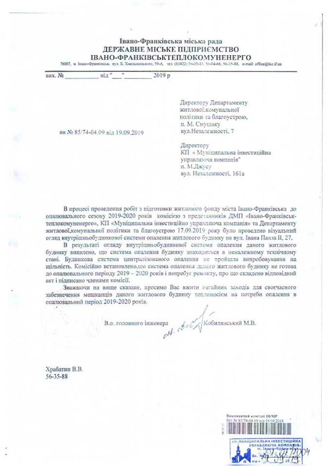 Через критичний стан мереж мешканці будинку 27 на вулиці Івана Павла II в Івано-Франківську можуть залишитись без тепла.