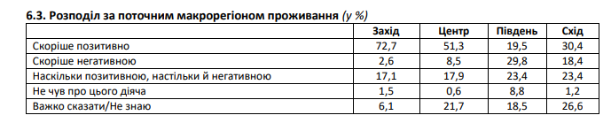 Водночас скоріше негативно діяльність Бандери на Заході країни оцінюють 2,6%, у Центрі — 8,5%, на Півдні — 29,8% і на Сході — 18,4%.