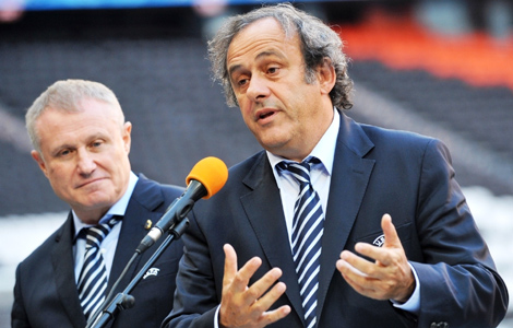На фото: Керманич УЄФА Мішель Платіні та президент ФФУ Григорій Суркіс
