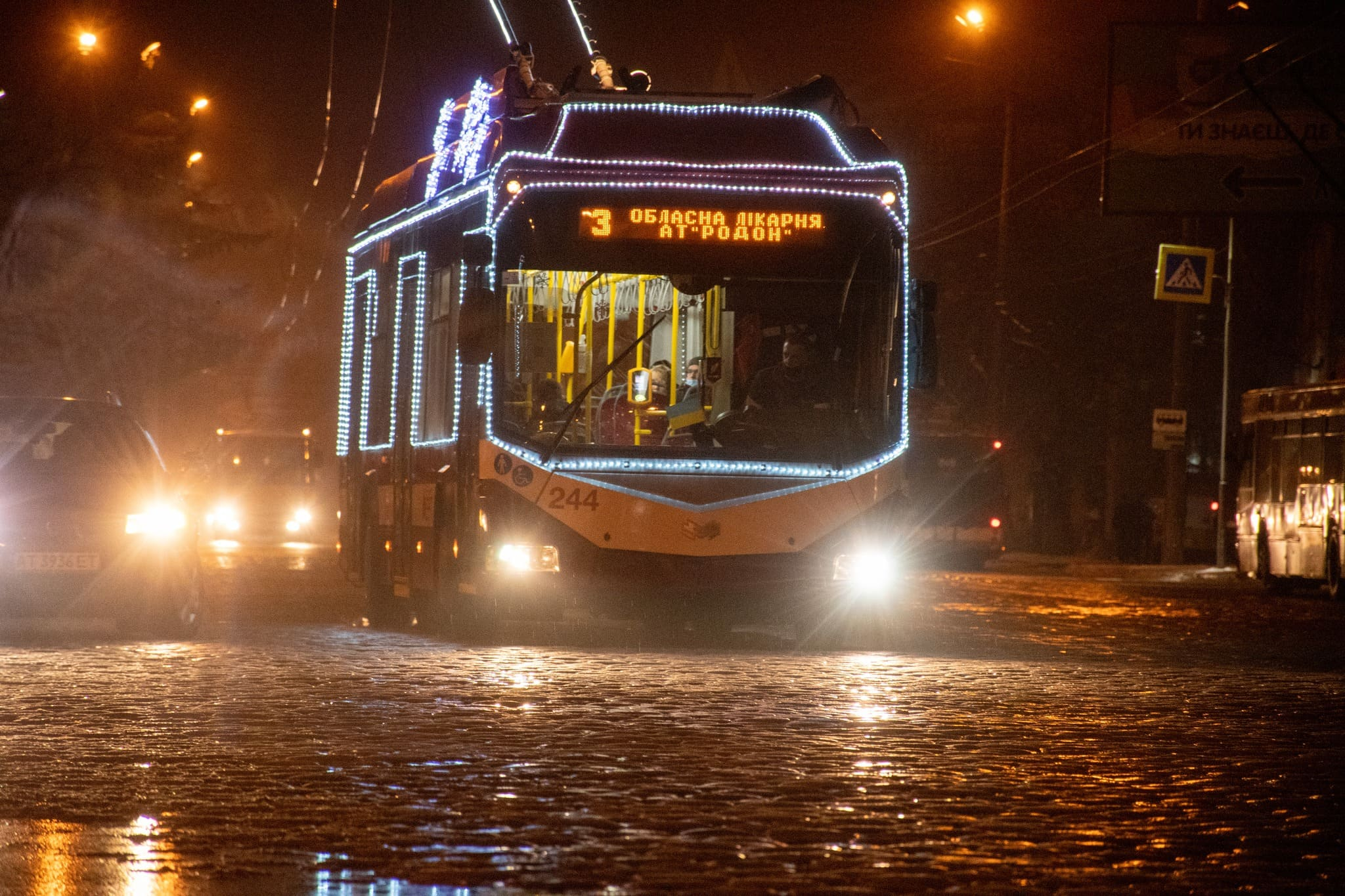 "Останній день 2021 року припав на п'ятницю. А це значить, що за планом інспекція містом. На цей раз - особлива, на тролейбусі КП "Електроавтотранс" ІФ! Сіли на святковий маршрут №3 і поїхали від вокзалу на Каскад", - йдеться у дописі.