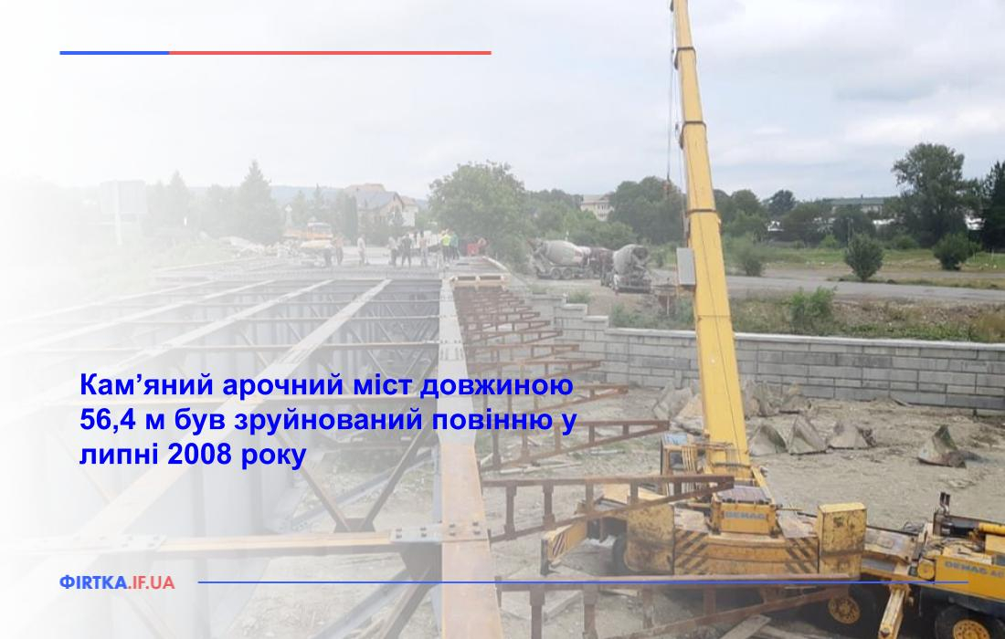 В минулому ж році, після виготовлення робочого проекту, розпочалося спорудження об’їзного та основного мостів. Однак невдовзі через відсутність фінансування будівництво призупинили. На той час було демонтовано зруйнований кам’яний міст та побудовано тимчасову об’їзну переправу із металоконструкцій САРМ довжиною 43 м та підходи до мосту.