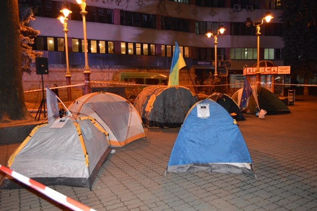 Ще вночі кілька активістів розклали невелике наметове містечко, яке з кожним днем лише розросталось.