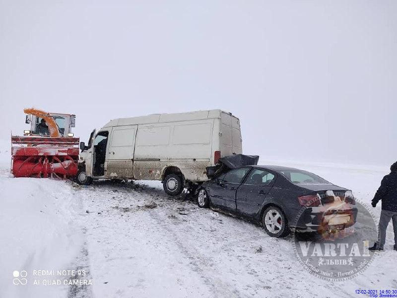 Між Рогатином та Львовом мікроавтобус в'їхав у снігоочисну машину (ФОТОФАКТ)