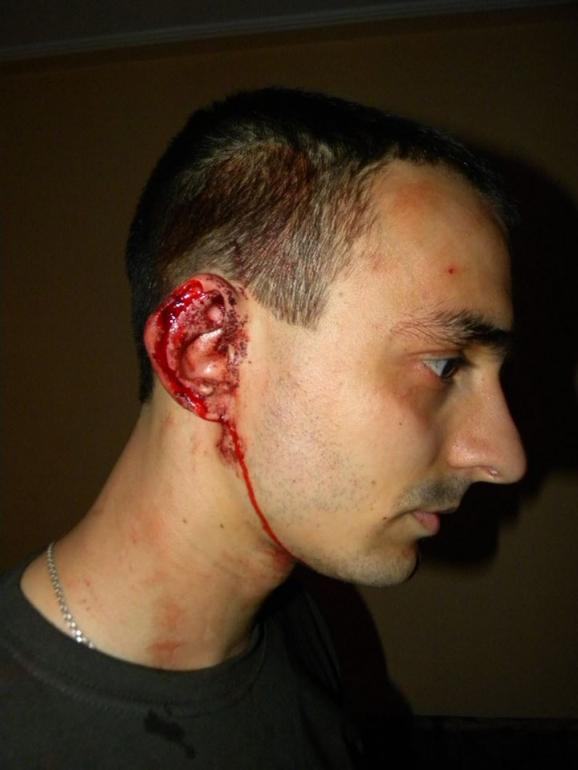 Судячи з розміщених у Мережі фотографій, Богдан отримав травми з крововиливом з вушної раковини і пальця на нозі. Сам постраждалий стверджує, що у нього відкушений фрагмент вуха.