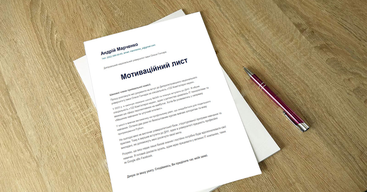 Цього року, при вступі до вищих навчальних закладі треба писати мотиваційний лист.