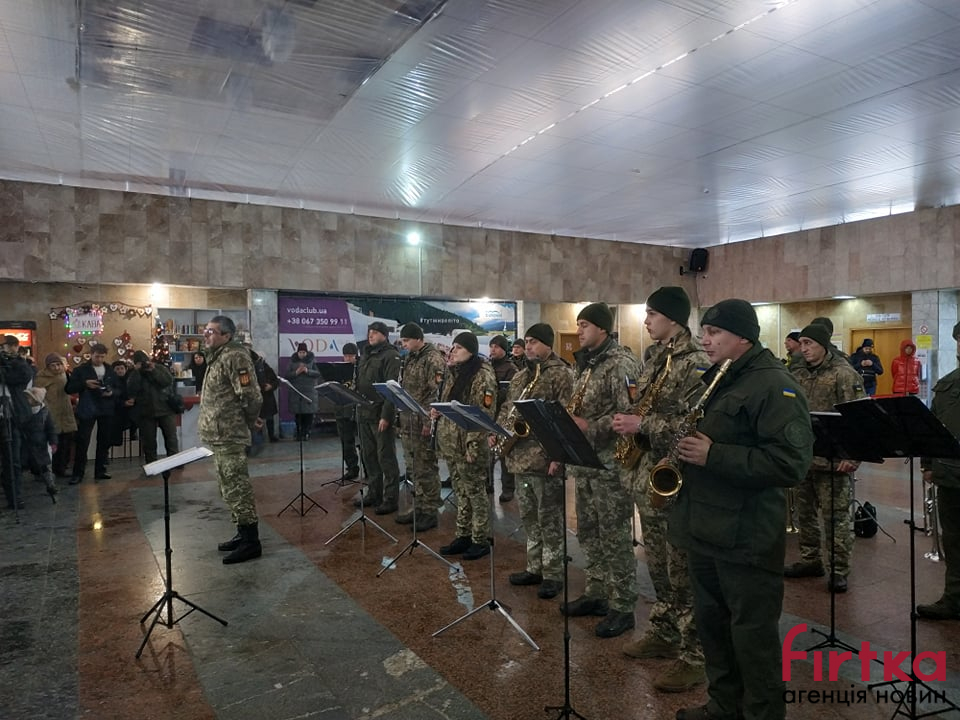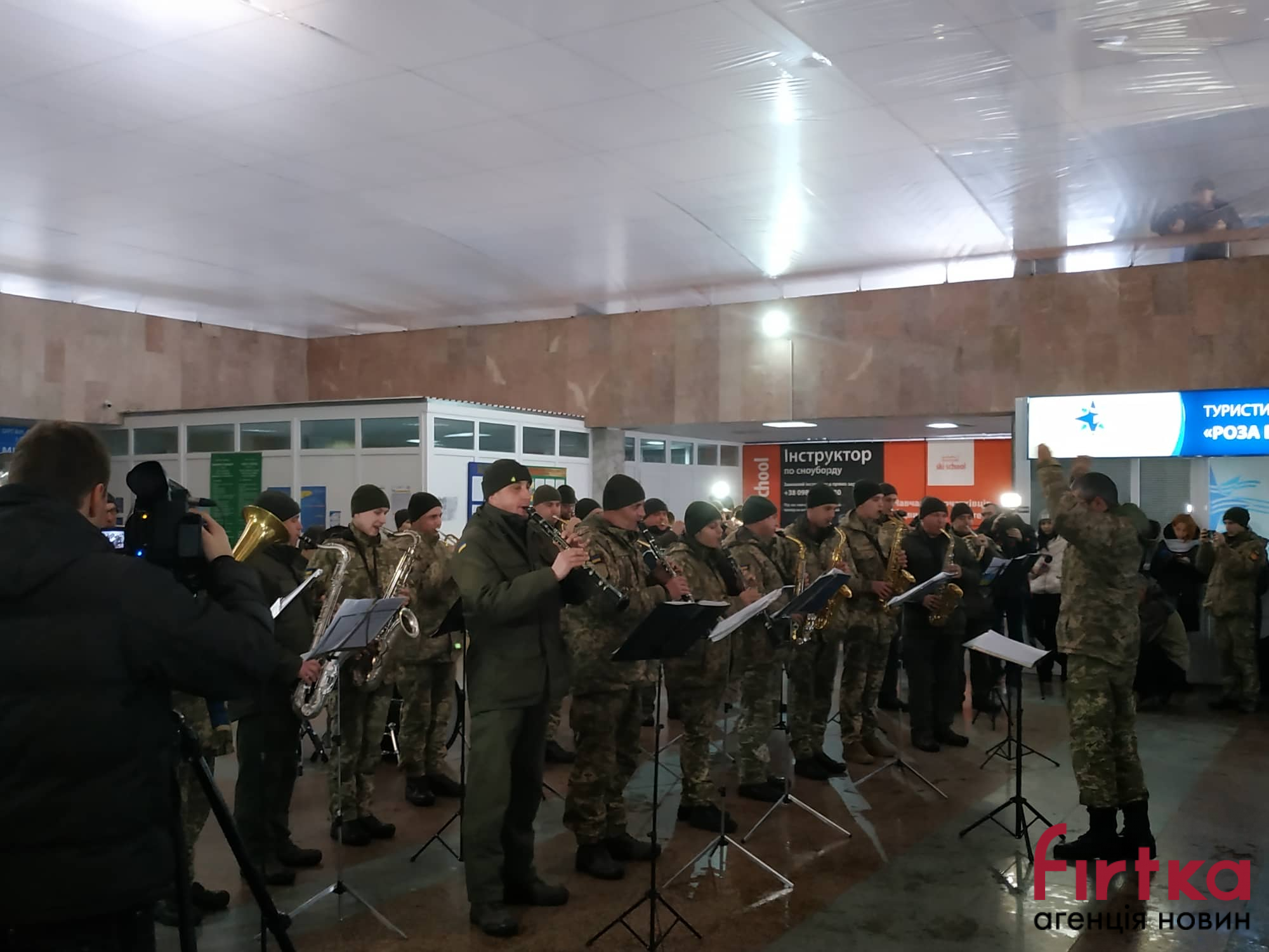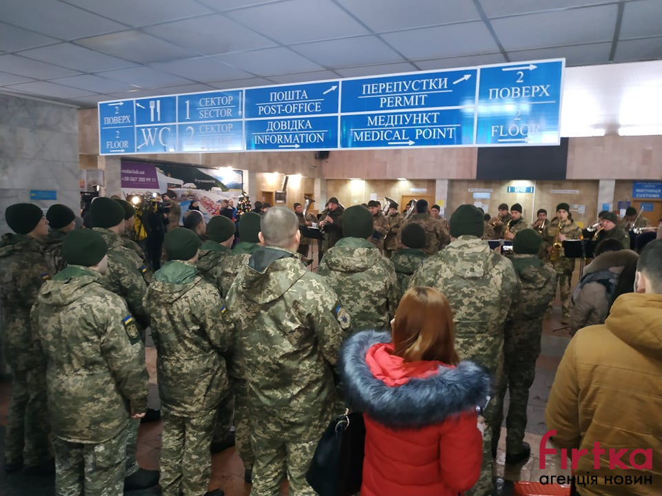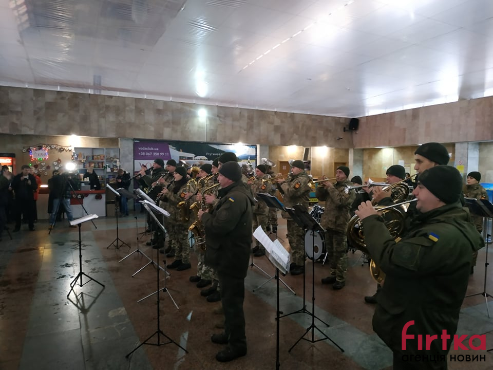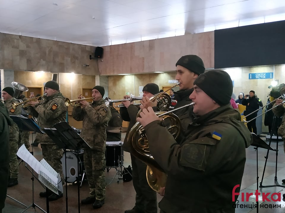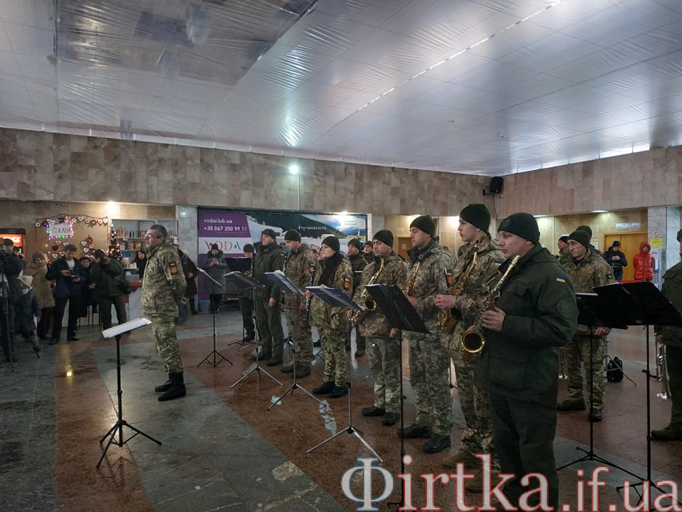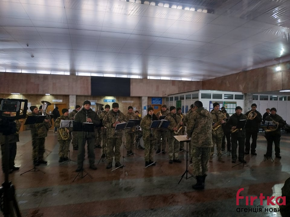 Сьогодні, 21 січня, в рамках проведення всеукраїнської акції, присвяченої вшануванню 242-денної героїчної оборони міжнародного аеропорту «Донецьк» у міжнародному аеропорті «Івано-Франківськ» виступив військовий оркестр військової частини А3215 з Тернополя.
