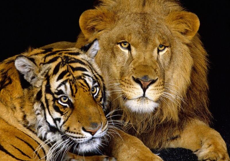 Два леви та тигр живуть у вже збудованому сучасному вольєрі, безтурботно граються й охоче позують для фотосесії цікавих відвідувачів із-за огорожі.