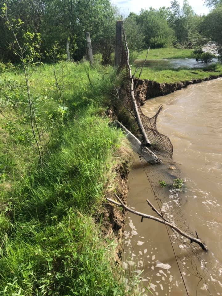 Зруйновано частину берега річки Бистриця Солотвинська з виходом води на заплаву, відповідний акт і запит на виділення коштів з берегоукріплення направлено. 5. В зв‘зку з частковим руйнуванням дороги до полігону ТПВ, немає можливості своєчасно вивозити побутові відходи з селища. Як тільки повноцінний доступ відновиться, за допомогою спецтехніки та транспорту комунальних підприємств, сміття буде вивезено.