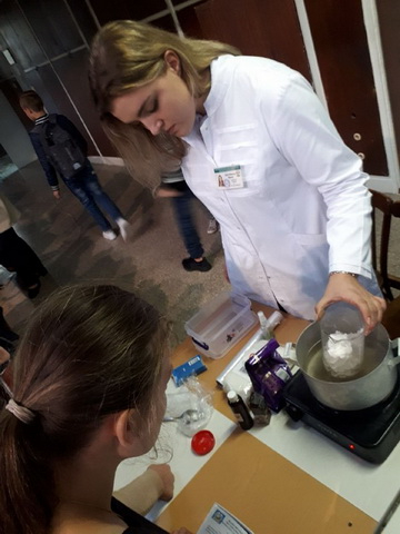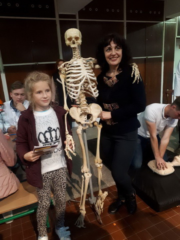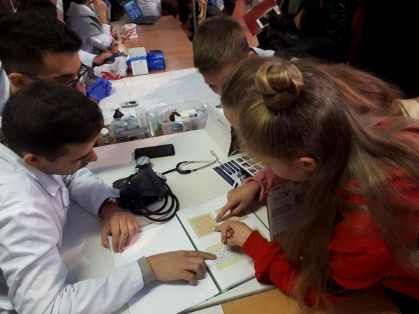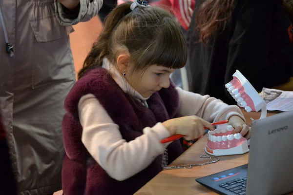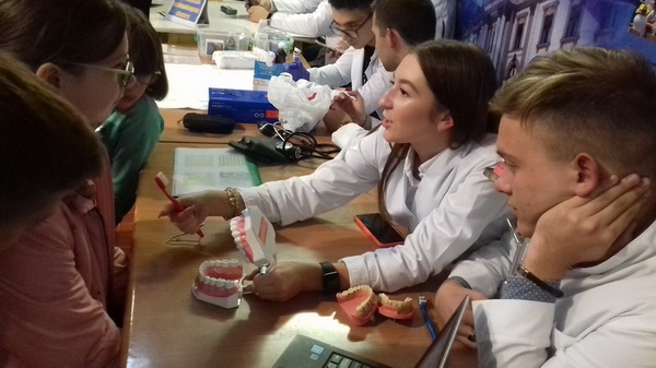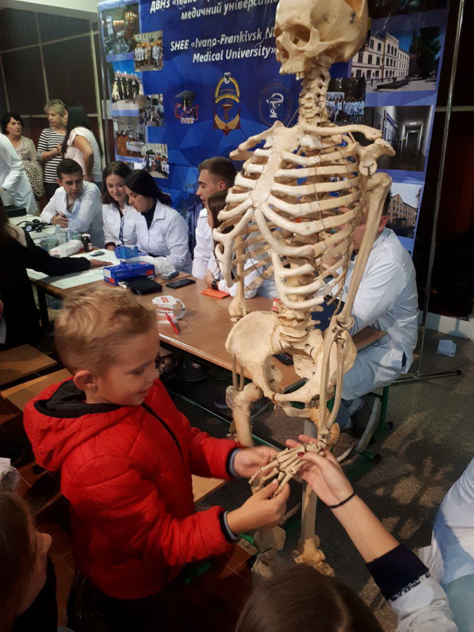 Студенти-стоматологи демонстрували зацікавленим дітям як правильно чистити зуби та доглядати за ротовою порожниною. Неабиякий натовп зібрався біля загального улюбленця — скелета. Діти розпитували про будову людського організму та функції окремих систем. Багато охочих брали участь у виготовленні натурального скрабу під керівництвом студентки фармацевтичного факультету.