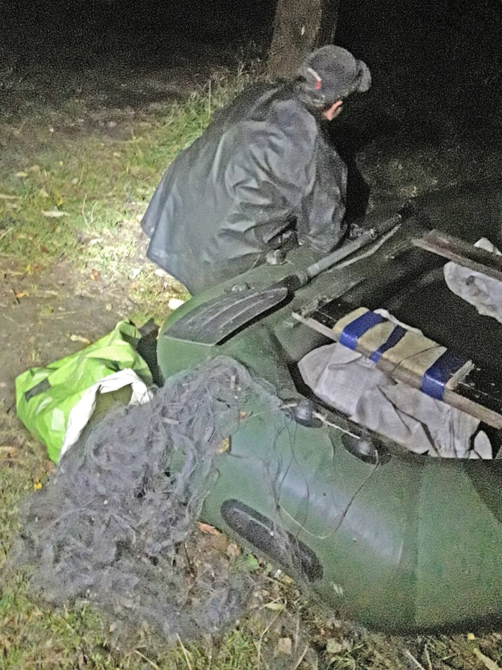 За фактом браконьєрства на особу складено адмінпротокол за ч. 4 ст. 85 КУпАП (грубе порушення правил рибальства). Незаконно добутої риби не виявлено. Човен та заборонене сітне знаряддя лову вилучено. Матеріали справи готуються для передачі до суду для притягнення порушника правил рибальства до відповідальності - накладення штрафу від 340 до 680 грн.