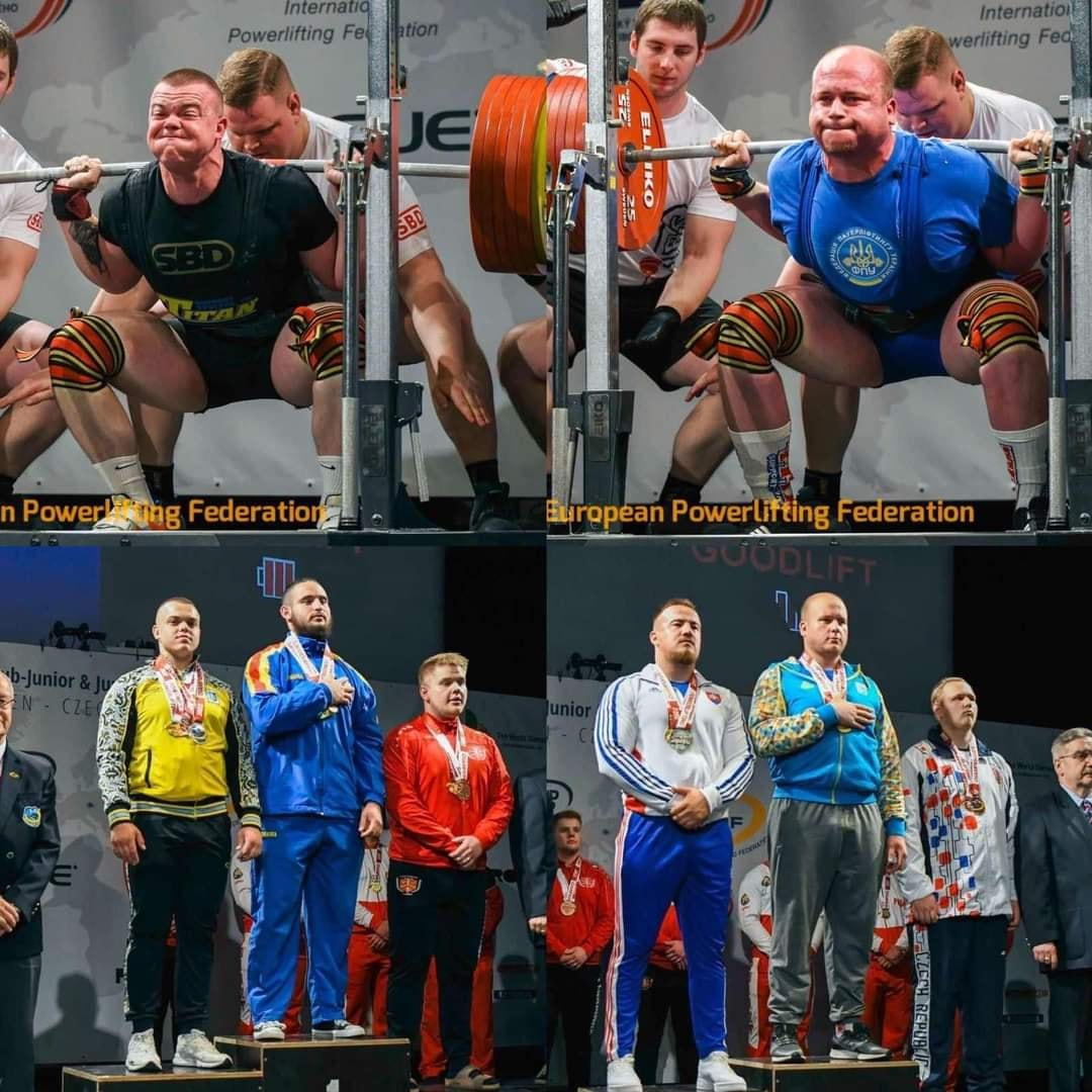 Віктор Голіней у категорії понад 120 кг став чемпіоном Європи з сумою триборства 1100 кг та зібрав повний комплект малих золотих медалей! 420 кг у присіданні, 322,5 у жимі та 357,5 кг у тязі!