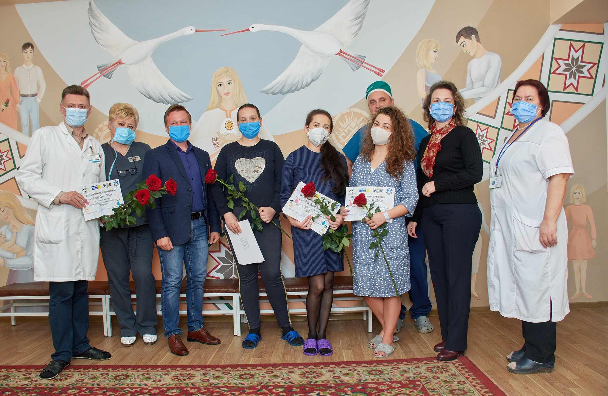 Заступник директора Департамент молодіжної політики та спорту Назарій Куземка та заступниця начальника Управління охорони здоров'я Івано-Франківської міської ради Алла Вацеба подарували породіллям від міста грошові сертифікати в розмірі 3 000 гривень на кожне немовля.