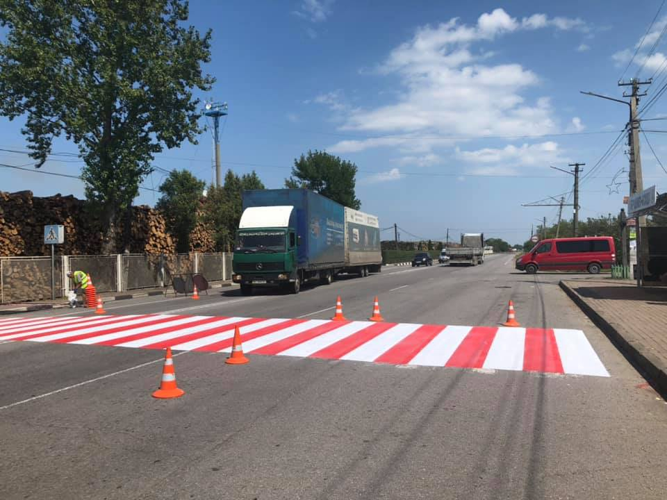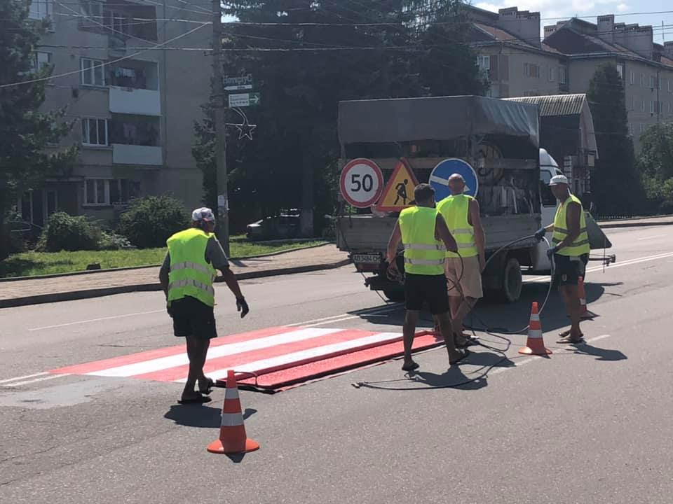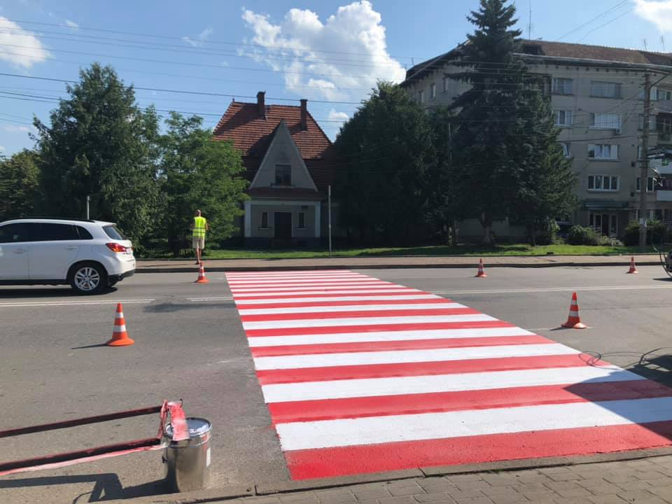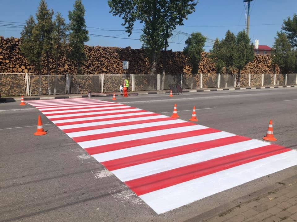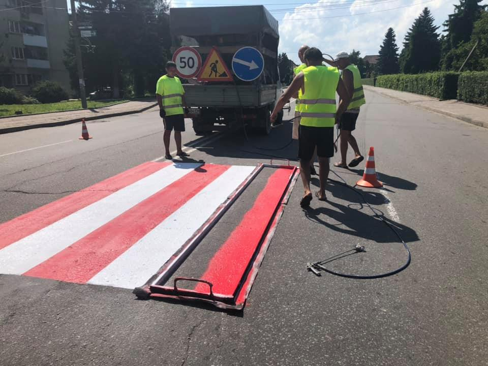 Працівники підрядного підприємства на замовлення Служби автомобільних доріг в Івано-Франківській області нанесли зокрема три нові пішохідні переходи (у с. Креховичі поруч із перехрестям) та в смт Брошнів-Осада (біля селищної ради), а також ще п’ять поновили.