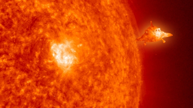 На вивчених зображеннях експерт повідомив, що побачив чіткі обриси космічного судна прибульців, що віддаляється від світила. Зліт НЛО, на його думку, збігся з вибухом в розпеченому об’єкті.