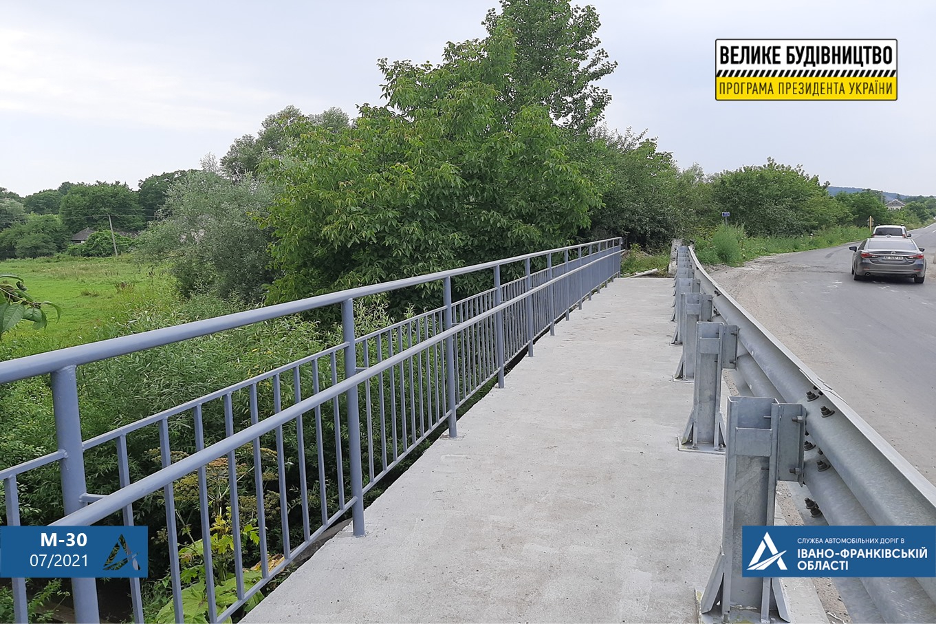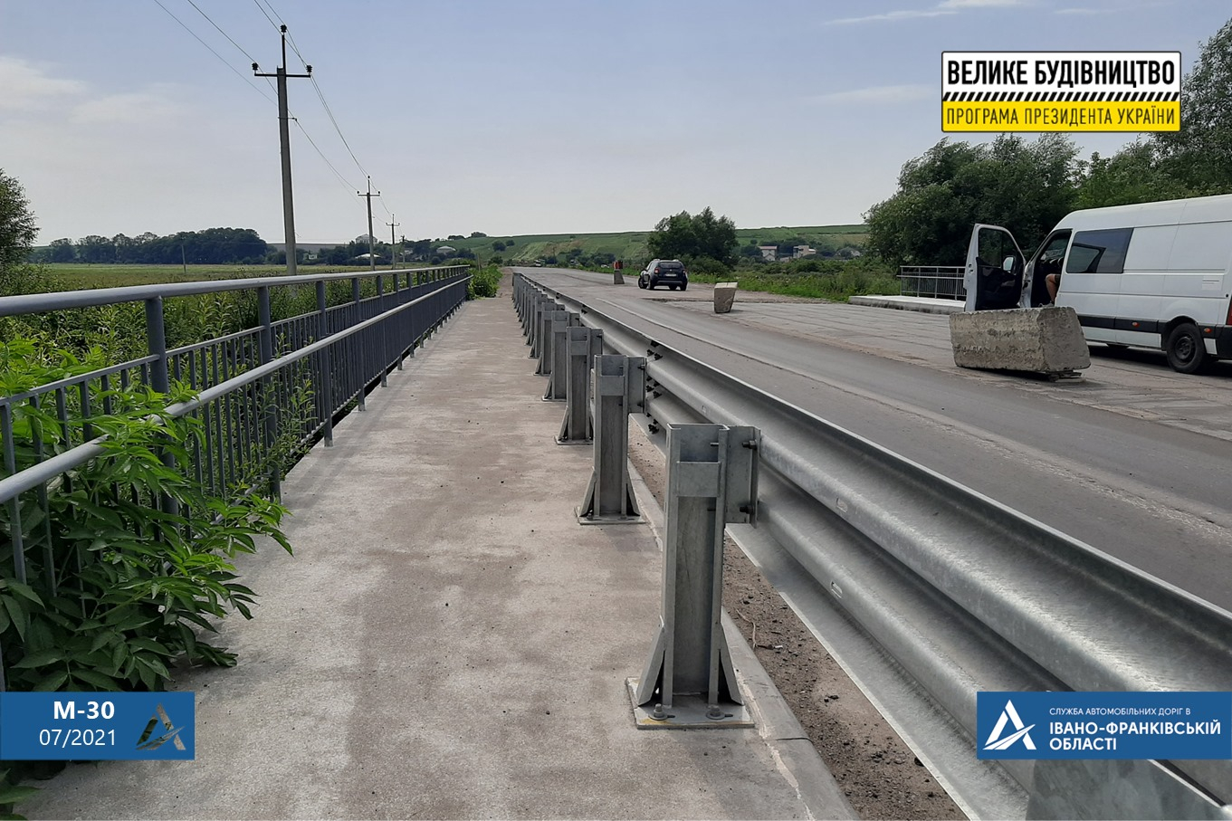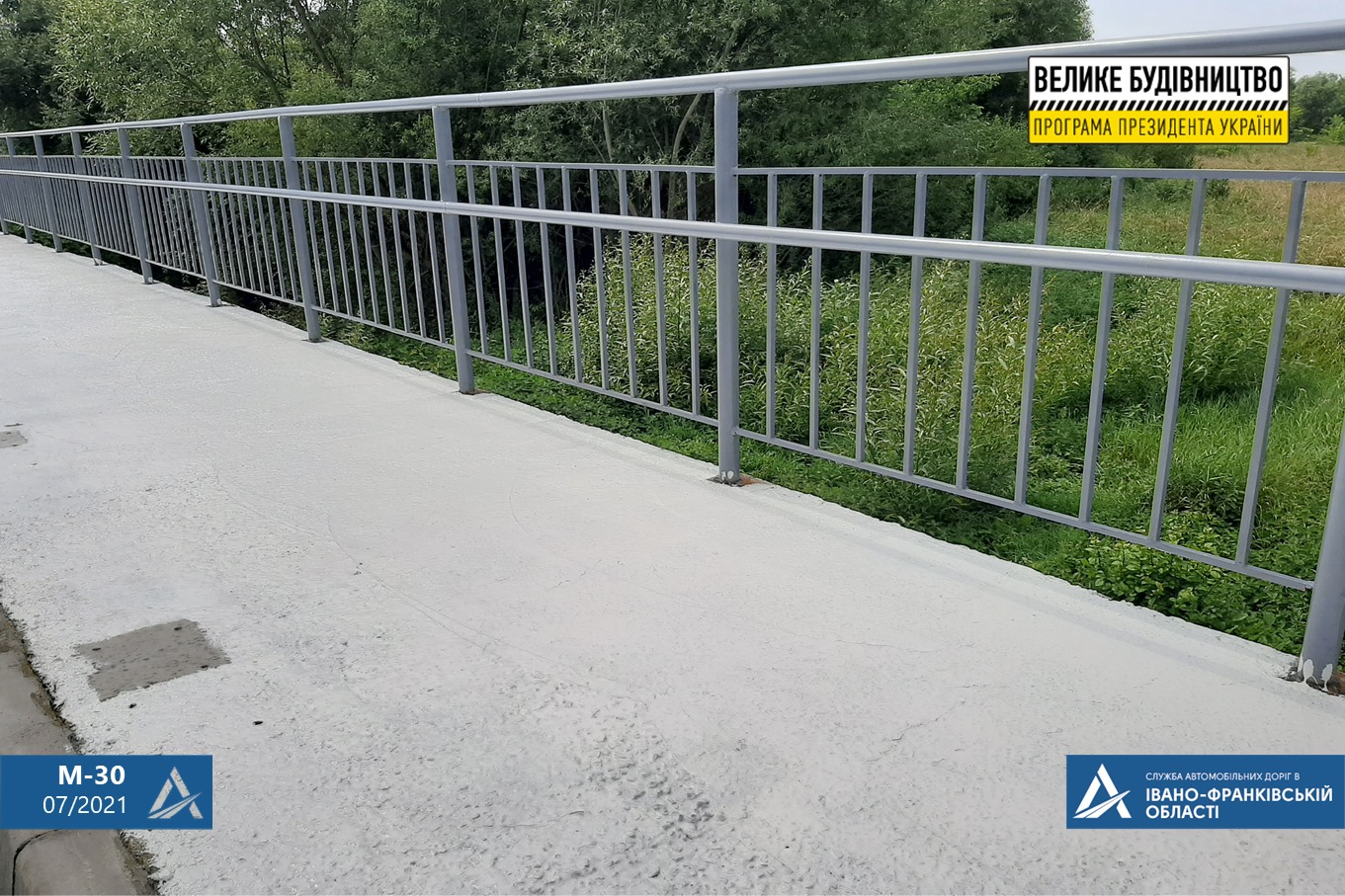 На кожному з об’єктів влаштовано перильне та бар’єрне огородження. Аналогічні роботи проводимо на лівій частині цих мостів.