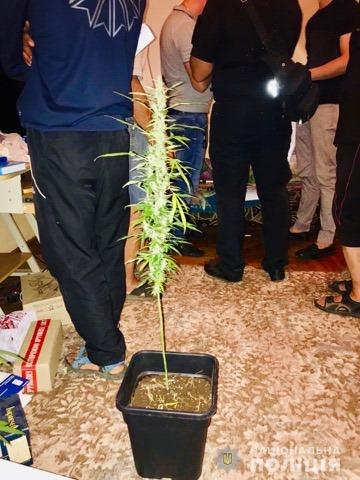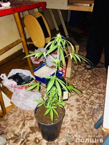Під час санкціонованого обшуку в помешканні зловмисника працівники поліції виявили пакет з рослинною речовиною, зовні схожу на наркотичний засіб «марихуану» близько 500 г, дві рослини конопель, які росли у горщиках, а також саморобні пристрої для куріння.