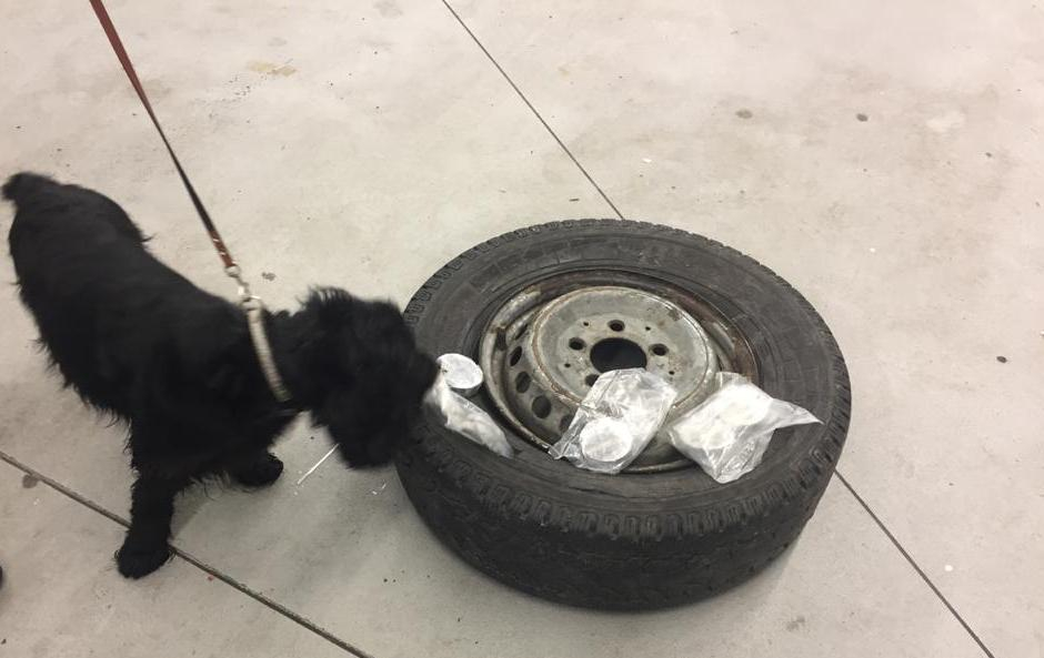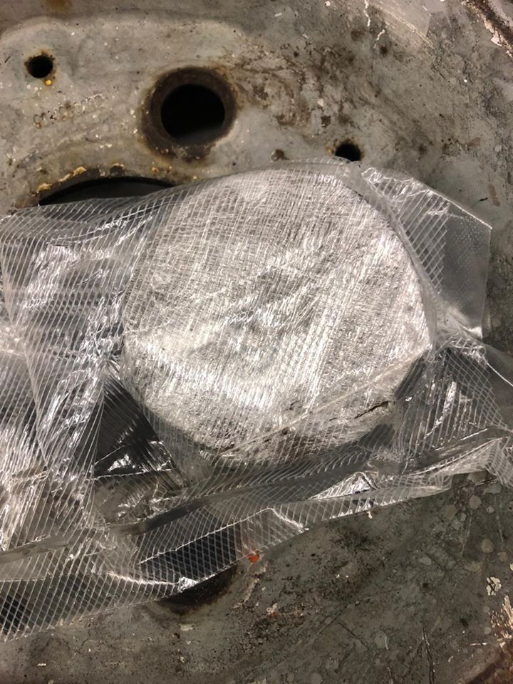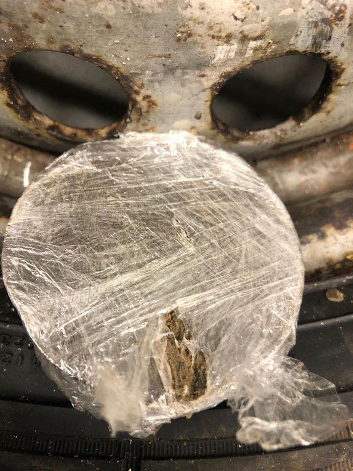 Під час огляду в запасному колесі автомобіля виявили речовину рослинного походження коричневого кольору, спресовану у вигляді хокейних шайб та брикетів і упаковану в поліетиленові вакуумні пакети.
