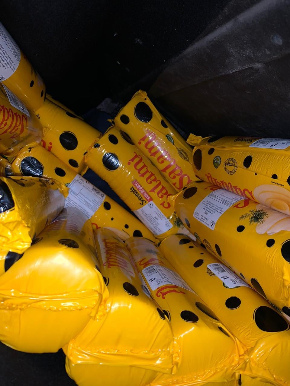 Під час огляду кабіни вантажівки спільна оглядова група в складі митників та прикордонників окрім заявлених речей знайшла 510 кг сиру різних торгових марок.