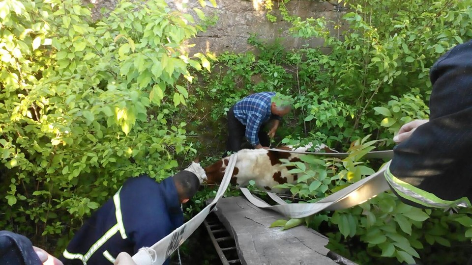 У неділю, 26 травня о 18:50 год до служби порятунку надійшло повідомлення про те, що теля впало у погріб на сусідньому подвір'ї у селі Котиківка.