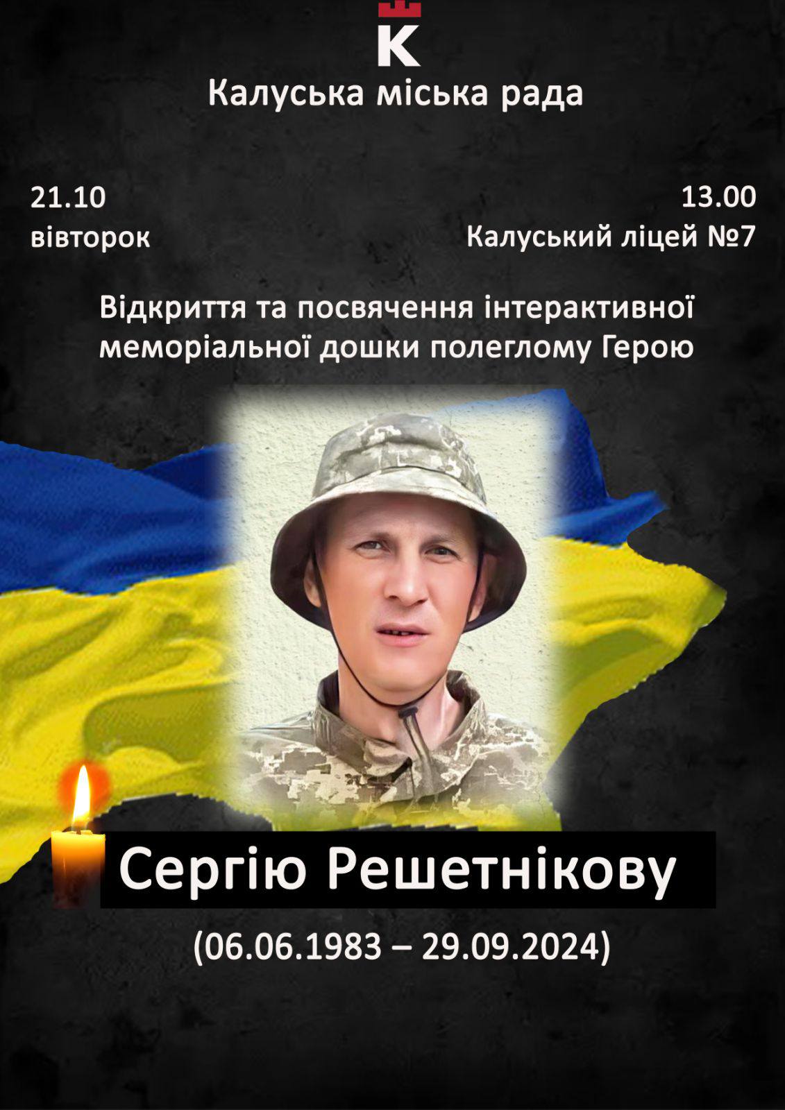 - Сергію Решетнікову (народився 6 червня 1983 року, загинув 29 вересня 2024 року).