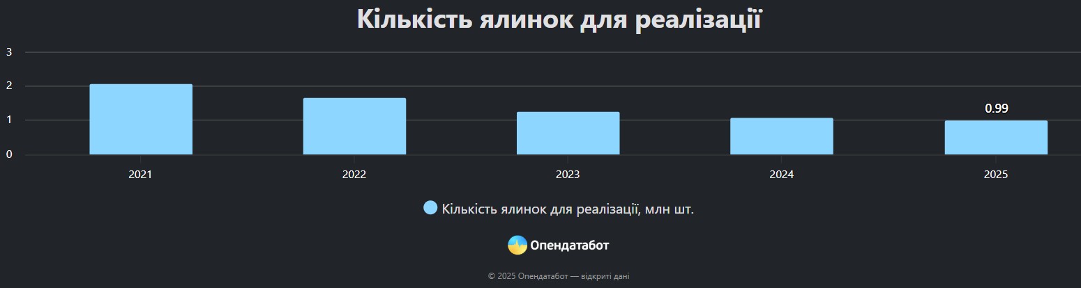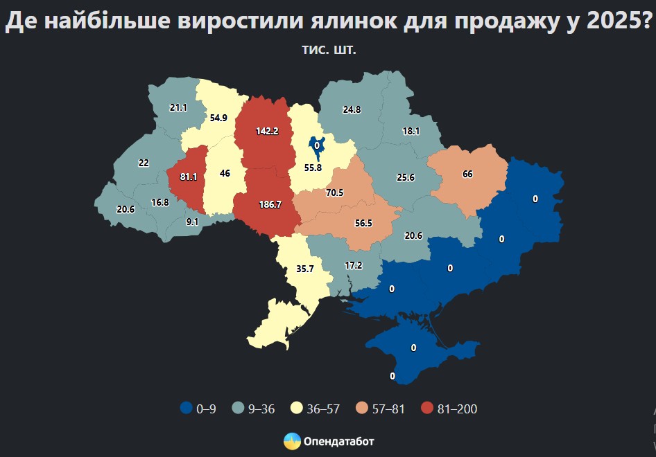 Для прикладу, на Івано-Франківщині виростили для продажу всього 16,8 тисячі ялинок у 2025 році.