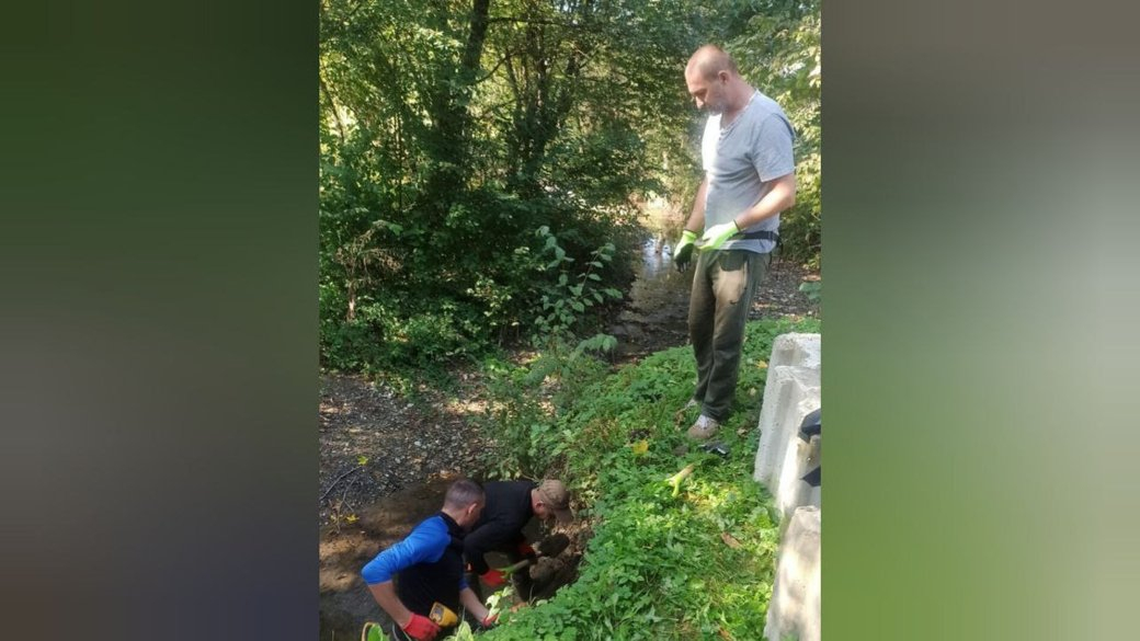 З його слів, півтора тижня тому на рештки випадково натрапили місцеві жителі в урочищі Пунчєва, коли укріплювали берег річки. Вони звернулися до селищної ради, яка повідомила про знахідку підприємству "Пам'ять". Її працівники приїхали на місце поховання 28 вересня.