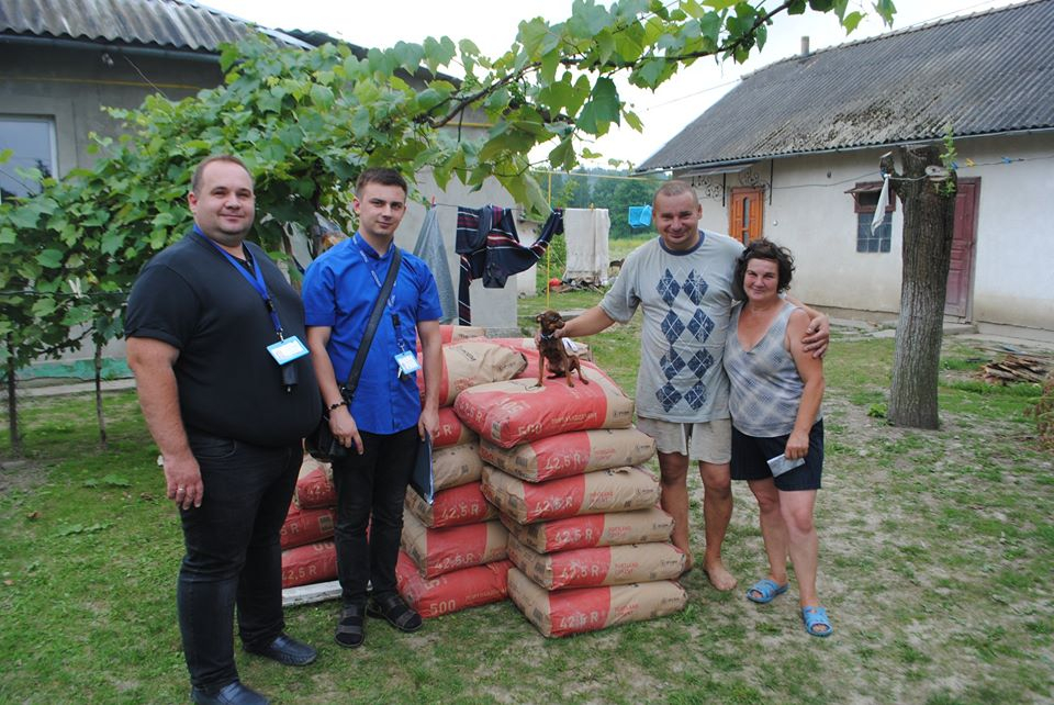 Дев'ять родин отримали 5 тонн цементу, 55 мпідлогової плитки, клей до плитки, фугу та грунтовки, 43 м2 ламінованої підлоги та прокламін для її встановлення.