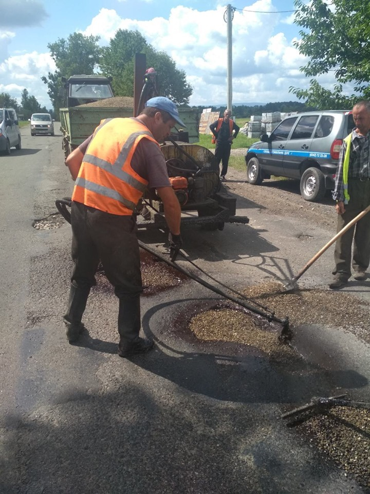 "Працюємо на а/д Р-24 Татарів - Кам'янець-Подільський. На км 105 у селі Великий Ключів Коломийського району здійснюємо поточний дрібний ремонт пневмо-струменевим методом. Тривають роботи на інших об'єктах. А зокрема на км 77+300 а/д Р-24 Татарів - Кам'янець-Подільський - будівництво мосту через річку Рибницю в м. Косів", - йдеться у повідомленні.