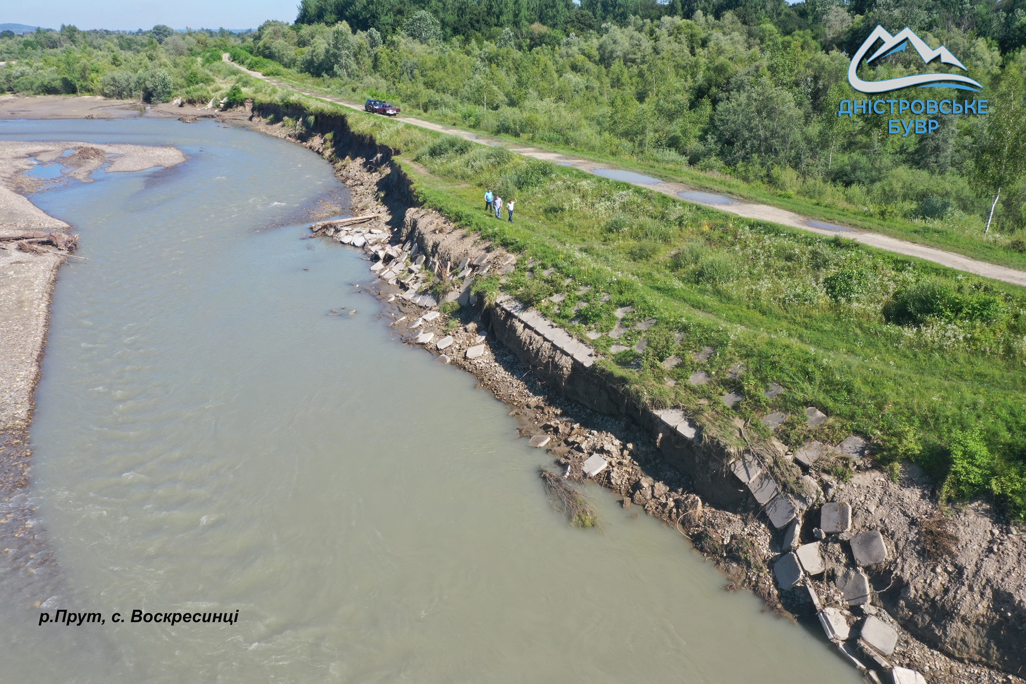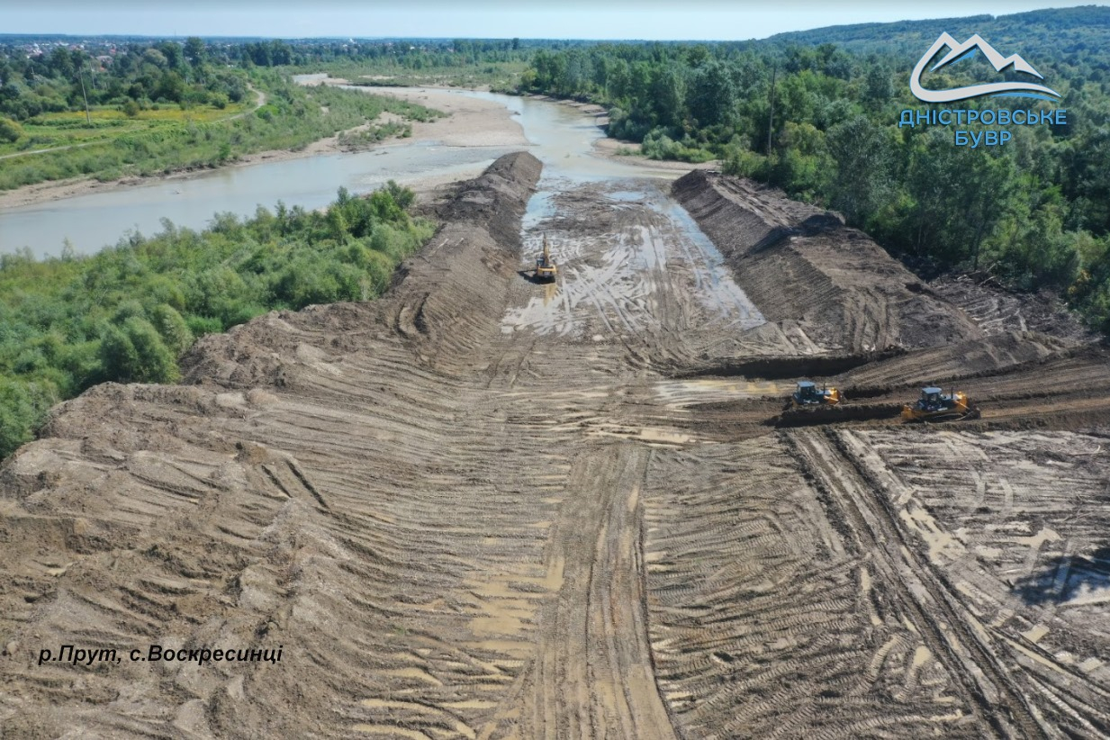 Наразі підрядна організація відвела русло Прута від пошкодженої ділянки та приступила до відновлення тіла дамби.