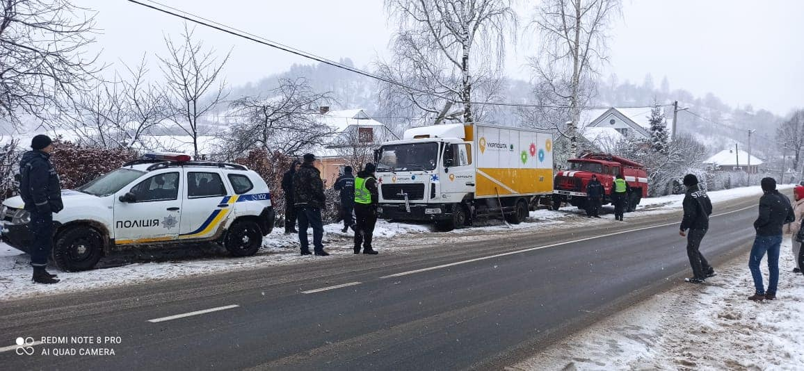 Так 6 лютого о 10:01 працівники Державного пожежно-рятувального поста смт Яблунів надавали допомогу по буксируванню на проїжджу частину дороги автомобіля "Укрпошти", який з'їхав на обочину та зіткнувся з електроопорою, в селі Уторопи Яблунівської ОТГ.