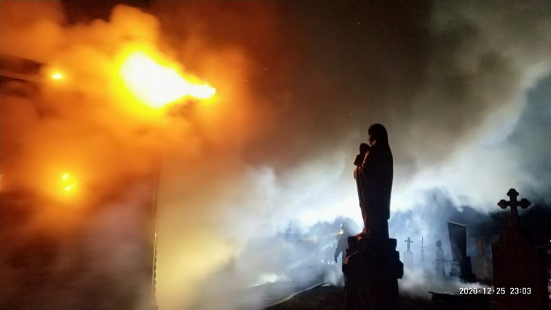 Вчора, 25 грудня о 21:08 до Служби порятунку "101" надійшло повідомлення про пожежу в с. Грицеволя на вул. Шевченка, 22 Радехівського району в дерев'яній церкві критій бляхою, розміром 14×10 м, висотою 15 м.
