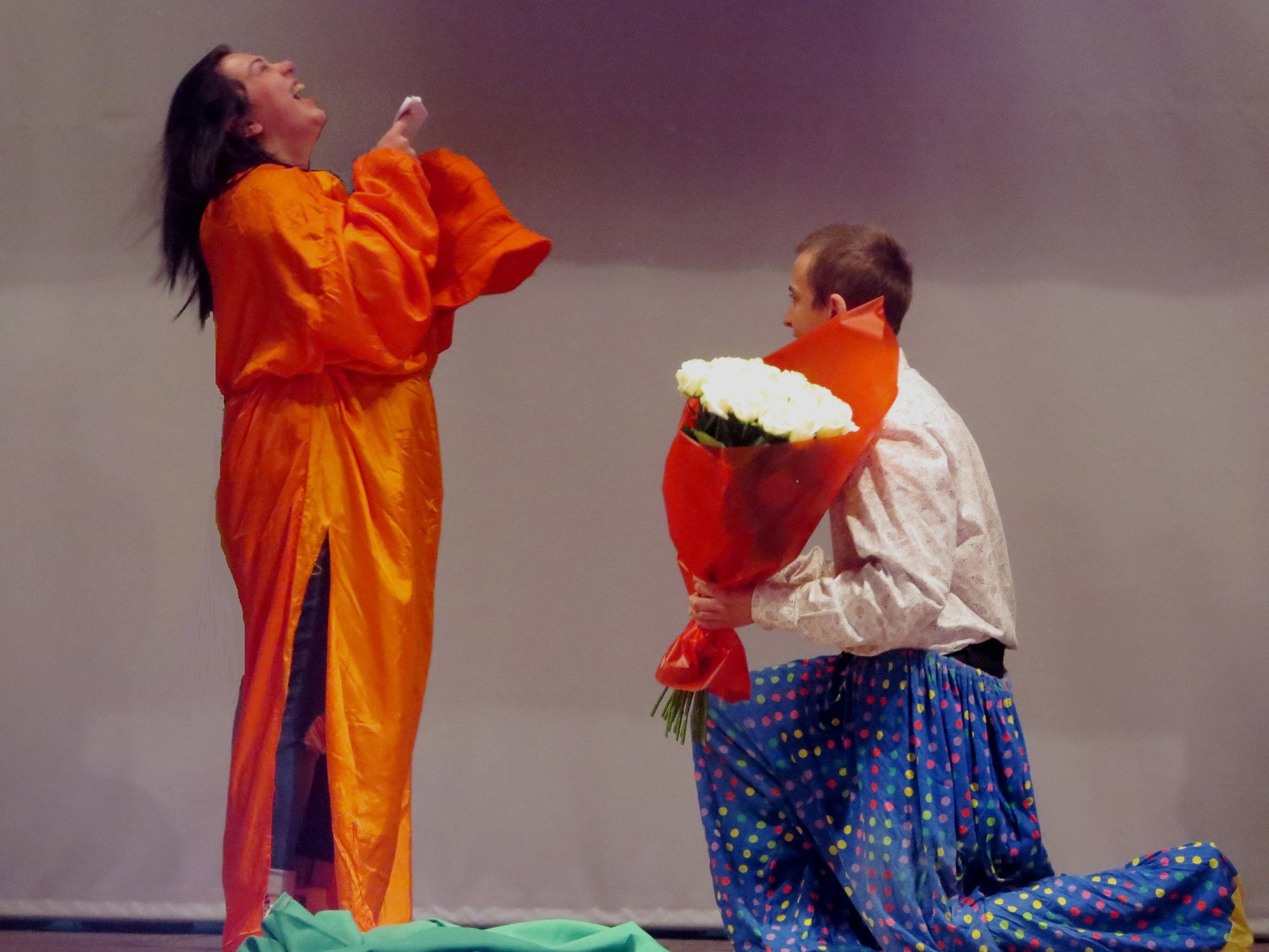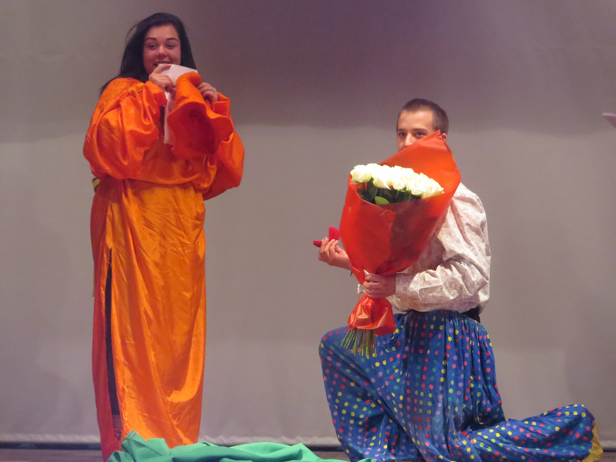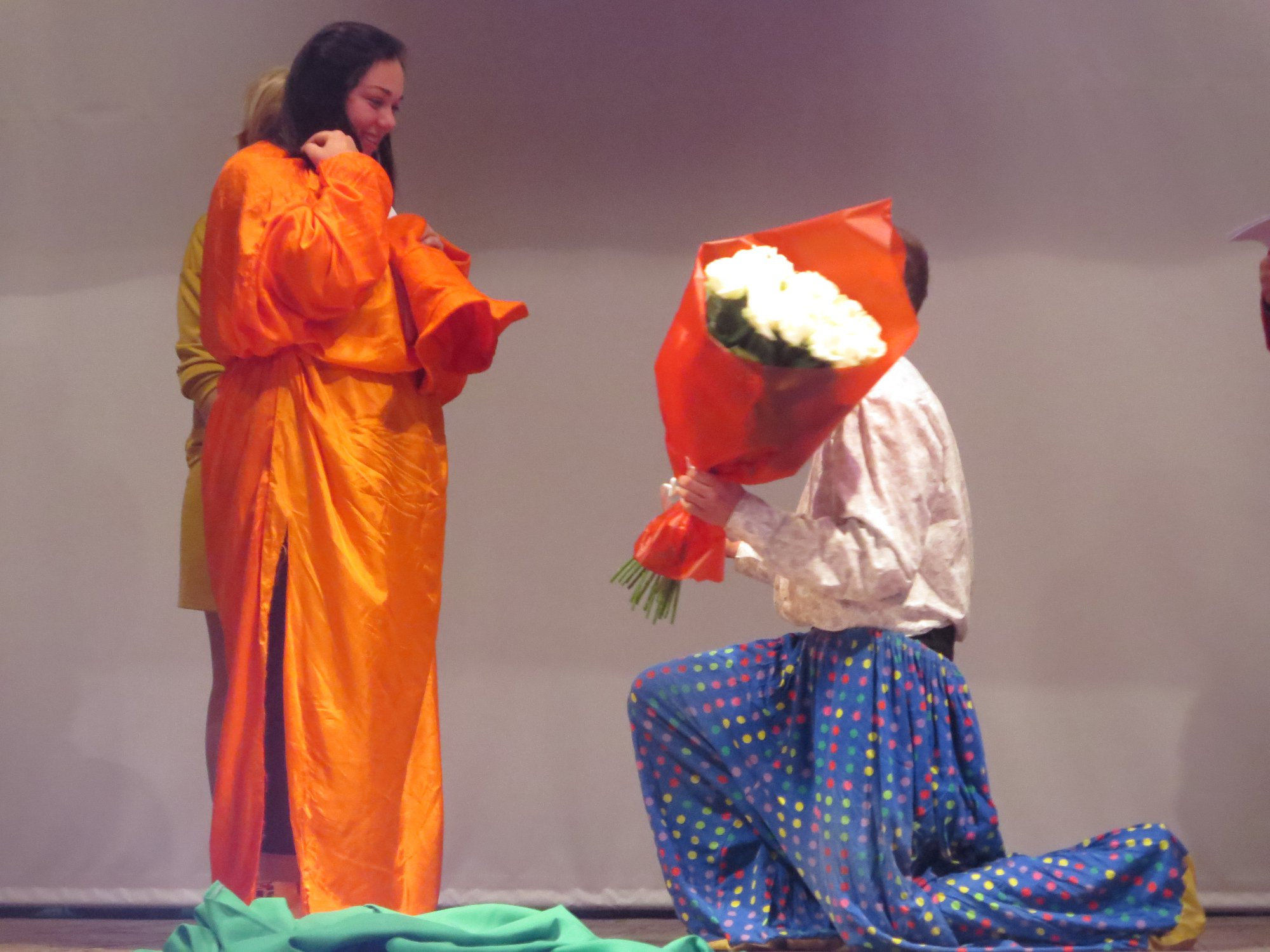 Весь зал разом зі сміливим хлопаком завмер в очікуванні відповіді нареченої, яка тільки завершила виступ у виставі за п’єсою Ігоря Шуба (Игорь Шуб), м. Київ, та Олександра Матусова, м. Лос-Анджелес, США «Гоп-ля! або Таємниця музичної скриньки».