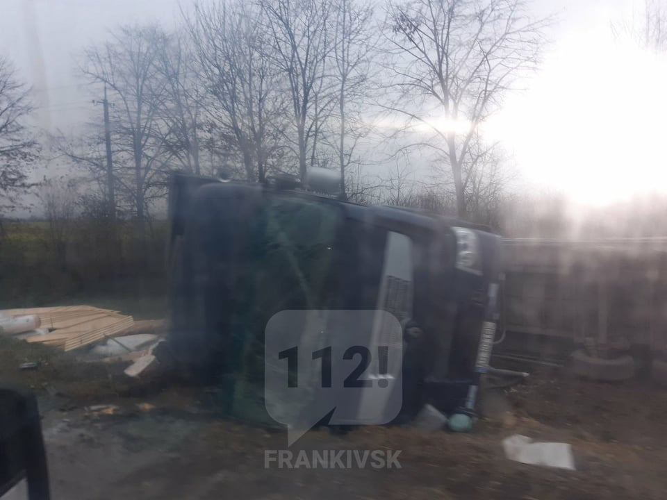 У Надвірнянському районі перевернувся автомобіль з причепом.