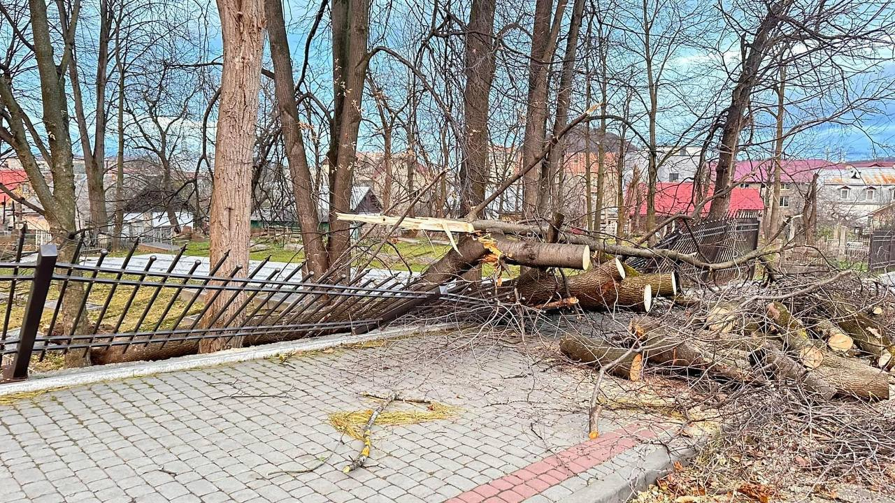 На Надвірнянщині сильний вітер пошкодив стели Героїв, повалив дерева та рекламну вивіску (ФОТО)