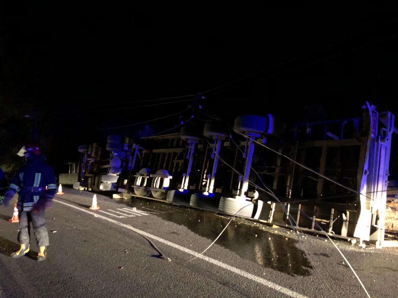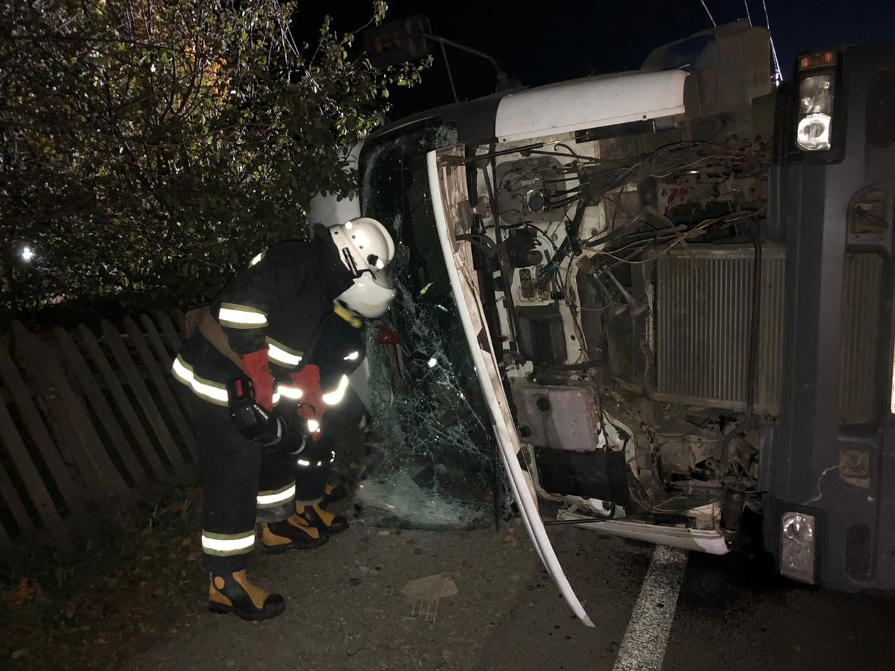 На автодорозі Н-09 «Мукачево-Львів» відбулась ДТП за участю вантажного автомобіля «RENAULT», що з’їхав в кювет та перекинувся на праву сторону, обірвавши при цьому лінію електропередач (380 В).