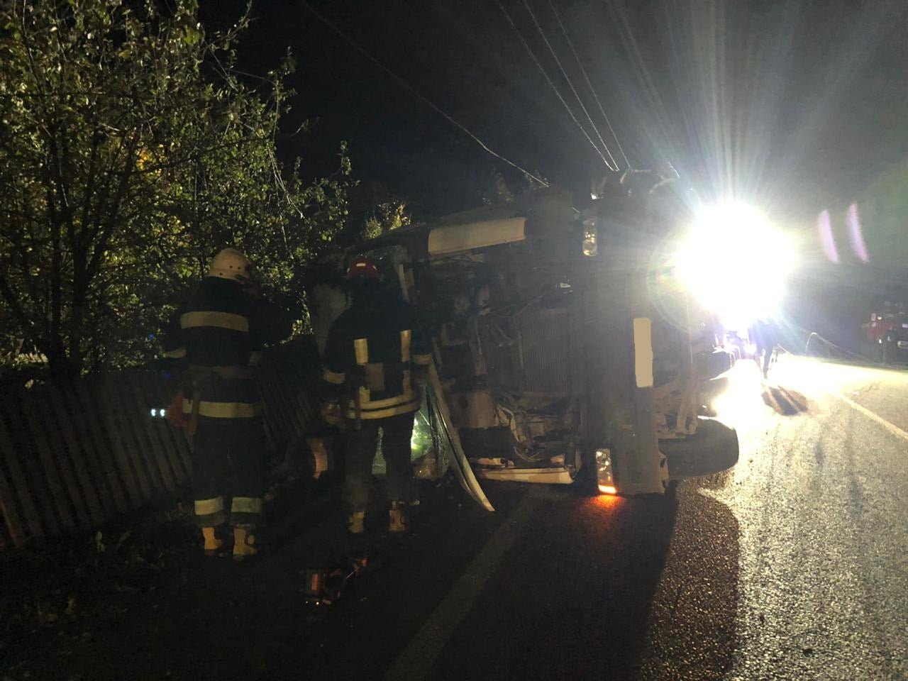 Чоловік отримав легкі травми, після огляду працівниками ШМД від госпіталізації відмовився. Рятувальники відключили клеми АКБ автомобіля, огородили місце події та змили паливно-мастильні матеріали з проїжджої частини автодороги.