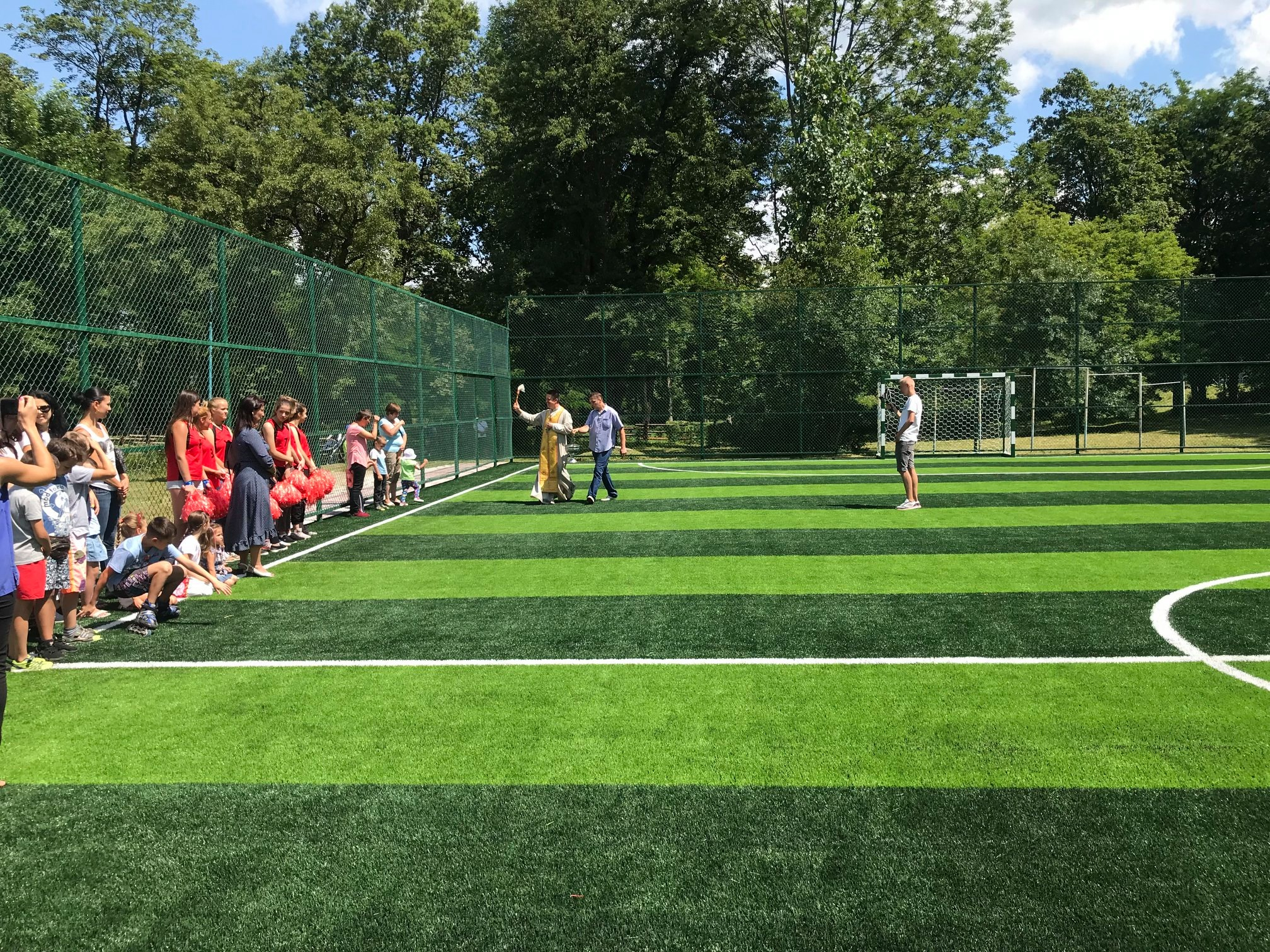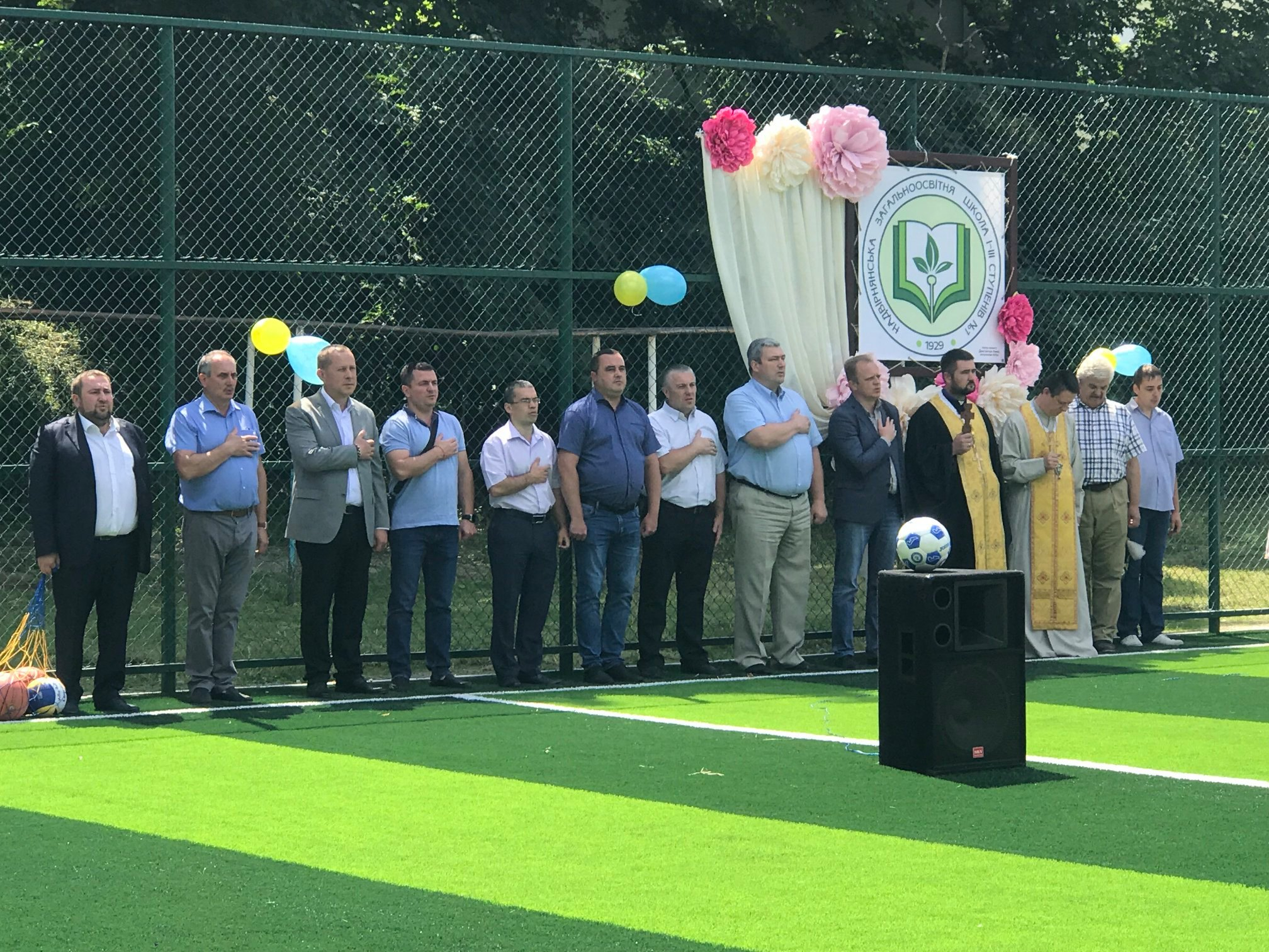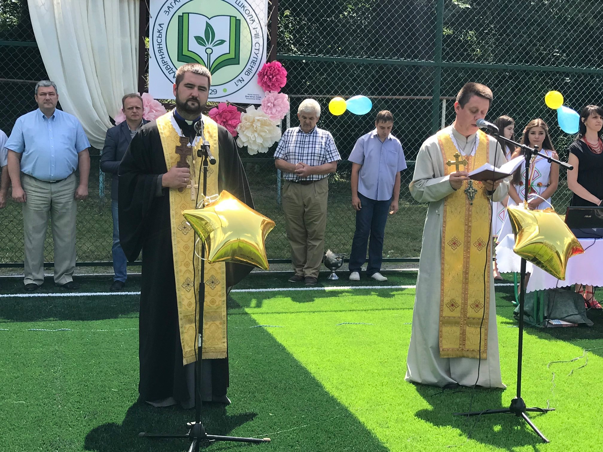 Освятили спортивну споруду отець-декан УПЦ КП Олег Траско та отець УГКЦ Юрій Зеленчук.