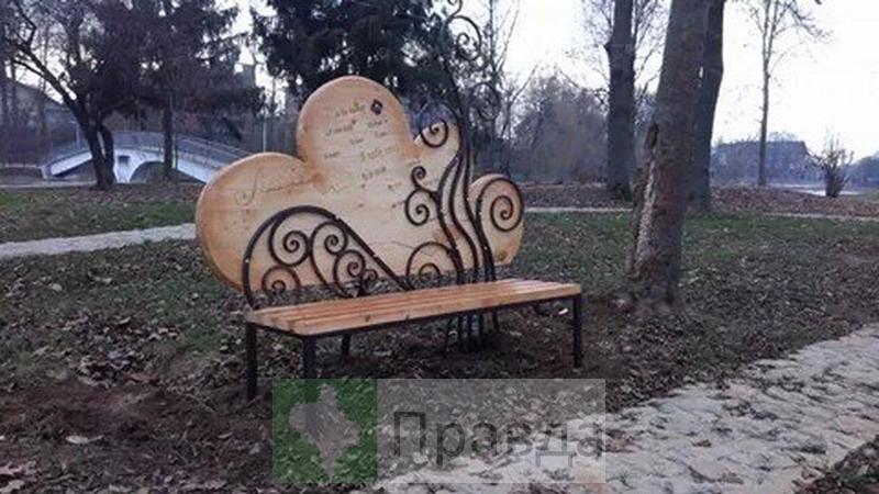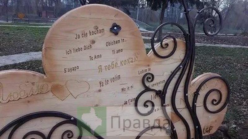 Її розписали написами „Я тебе кохаю” різними мовами світу. Встановлення лавочки стало можливим завдяки допомозі меценатів та за підтримки Департаменту житлово-комунального господарства, транспорту і звязку, передає Фіртка з посиланням на Правду.