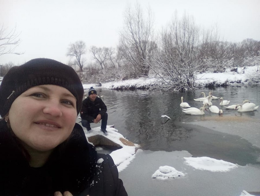 "Лебедів випадково побачила через вікно у машині. Місцева продавщиця каже, що підгодовують білим хлібом, бо пшениця тоне. Хоч у мережі кажуть, що їх 20, нарахувала лише 18, з них двоє — сірі".