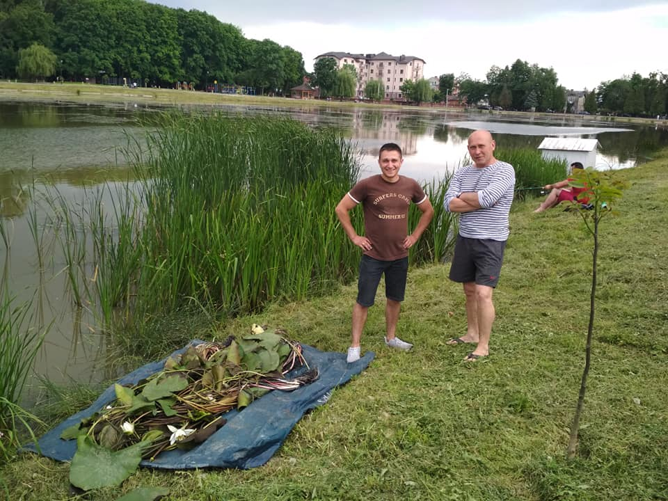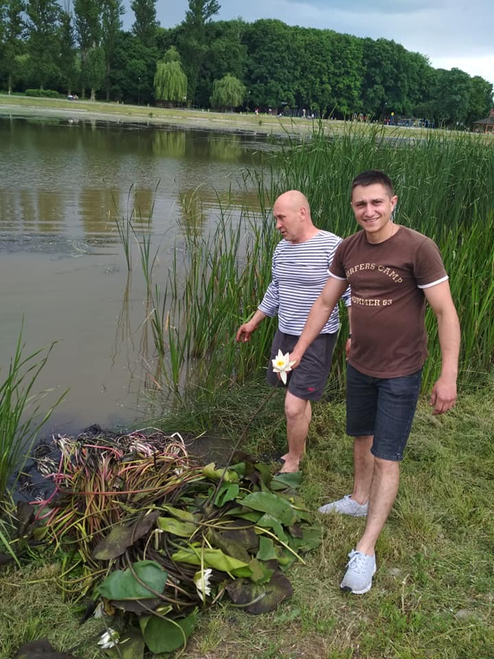 Місцеві мешканці Сергій Комісарук  та Віталій Зарубін посадили водяні лілії на міському озері у Коломиї.
