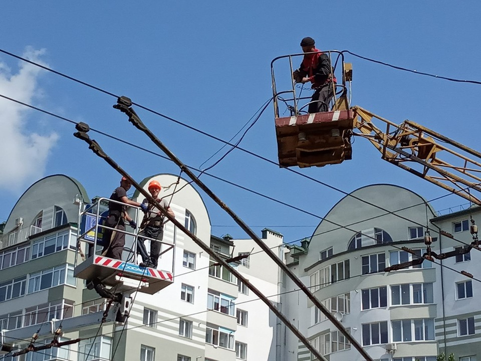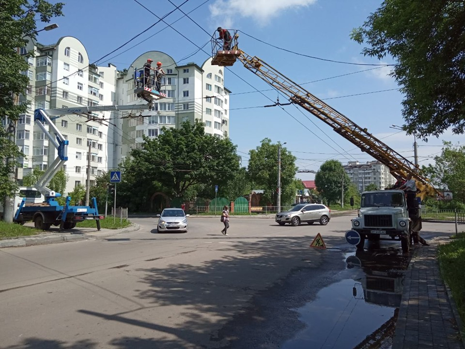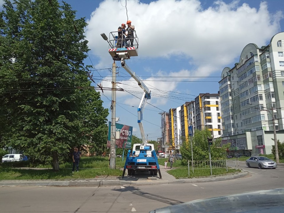 На перехресті вул. Тролейбусна-Хіміків провели роботи по заміні старої повітряної мережі на світлофорному об'єкті.