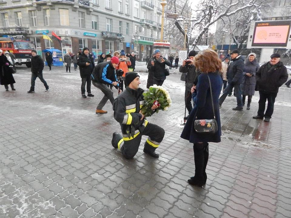 Молодець хлопчина! На таке не кожен здатний, а для тих хто завидує і далекий від пожежної служби скажу (для ПЕТРА І СУСАННИ теж!!!), на чергування заступає не одна машина, а ДВІ, також є резервні, на якій вочевидь і було здійснено виїзд, якщо ви хоч раз проходили біля пожежної частини по Франка, то могли б побачити що там не одні ворота і за ними не одна машина. ,«Бібіки», Сусанна» це проблискові маячки, дають перевагу на дорозі до місця пожежі, і я думаю що якщо Вам би хтось так освідчився, то Ви були б іншої думки, але певно вашому хлопцю для його БАБИ не хватило креативу або ще чогось для цього.
