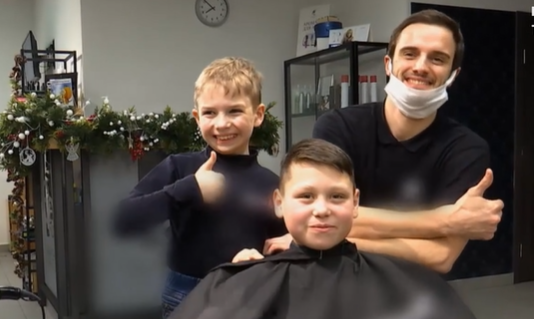 Коли Женя Семенович працює в салоні, то за кожним його рухом стежить майстер-інструктор, Андрій Грабчук. Але з ножицями та феном малий вправляється наче досвідчений.