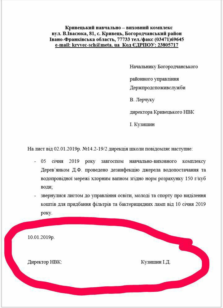 Окрім того, ще з весни борються за належний стан води, з якої готують їжу дітям. Тепер вимагають звільнення керівництва навчально-виховного комплексу через грубе невиконання своїх посадових обов’язків та халатне ставлення до здоров’я їхніх дітей.